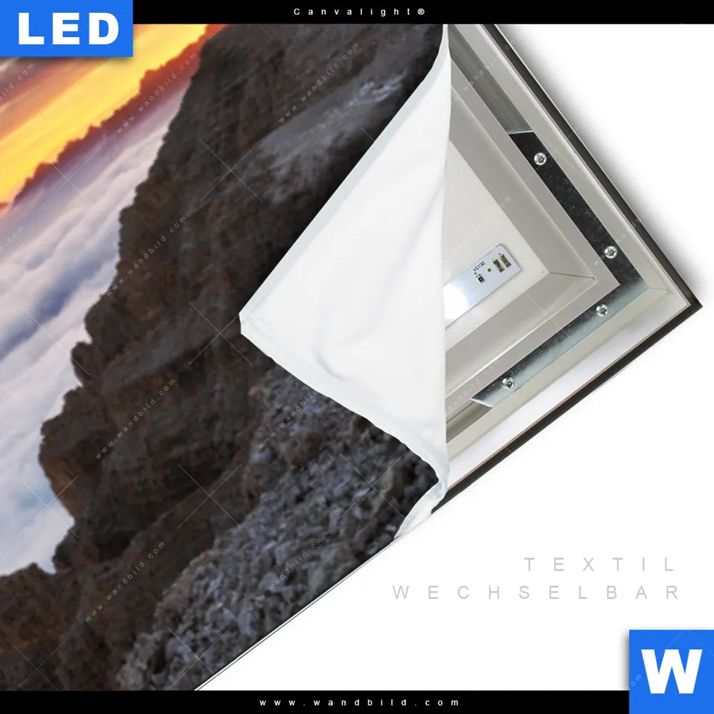 LED-Textilrahmen-Bild mit austauschbarem Landschaften Textil-Druck (Wechselbild)