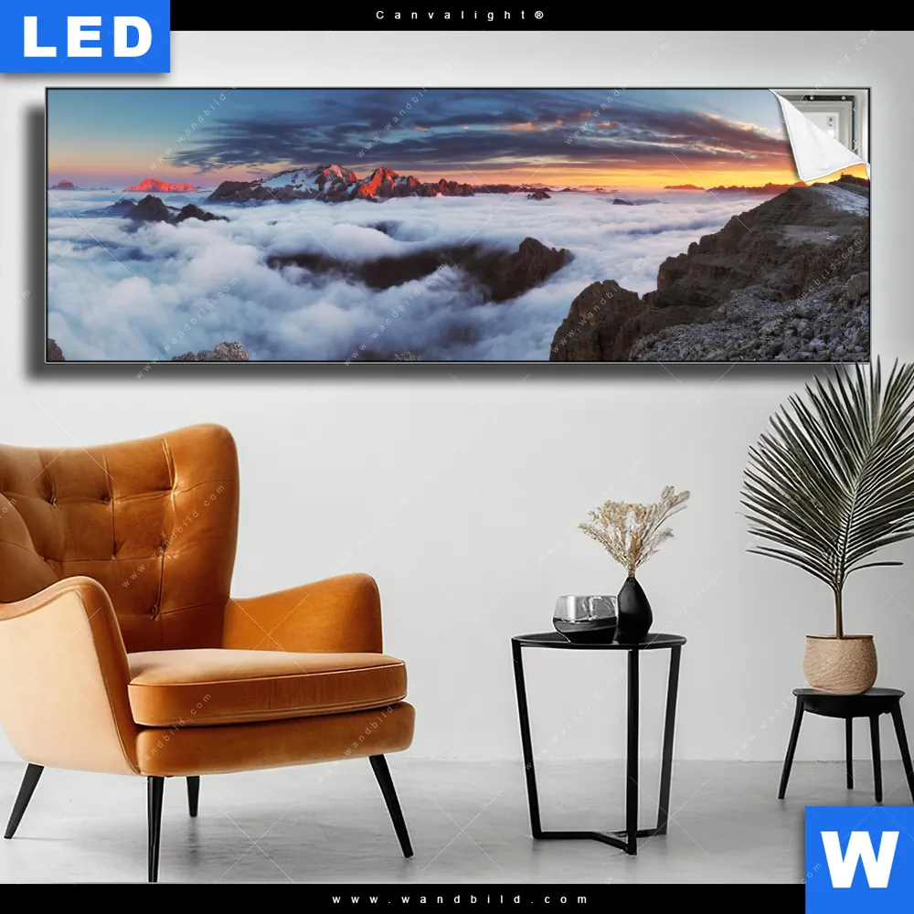 Canvalight® Leuchtbild | Alpen im Nebel | Panorama