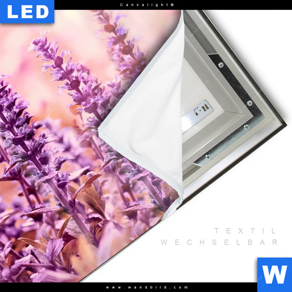 LED-Textilrahmen-Bild mit austauschbarem Blumen - Botanik, Landschaften Textil-Druck (Wechselbild)