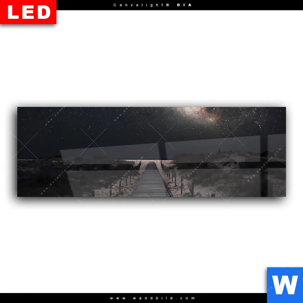 Wechselmotiv Acrylglas Canvalight® DIA | Milchstraße über einem Holzweg | Panorama