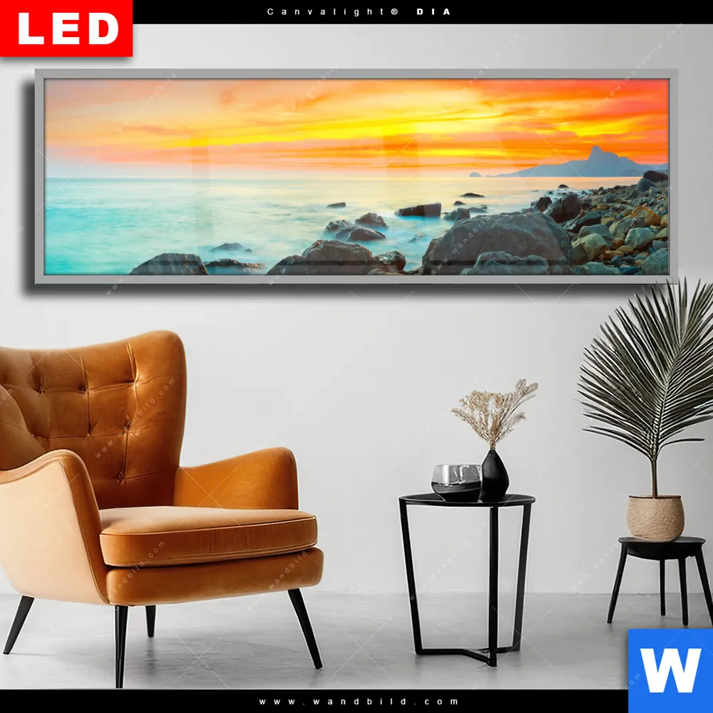 Wechselmotiv Acrylglas Canvalight® DIA | Sonnenuntergang über dem Meer | Panorama