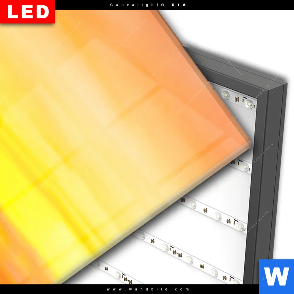 BEACHTE: Du solltest bereits ein Canvalight® DIA Leuchtbild mit austauschbarem Acrylglas-Motiv besitzen! Im Lieferumfang ist nur ein Wechsel-Acrylglas-Druck ohne Leuchtrahmen enthalten. Der Abdeckwinkel im Frontbereich des LED Bildes deckt umlaufend ca. 19 mm des Motives ab. Bei eigenen Motiven bitte darauf achten, wichtige Elemente in ausreichender Entfernung vom Rand zu platzieren, damit diese nicht verdeckt werden.
