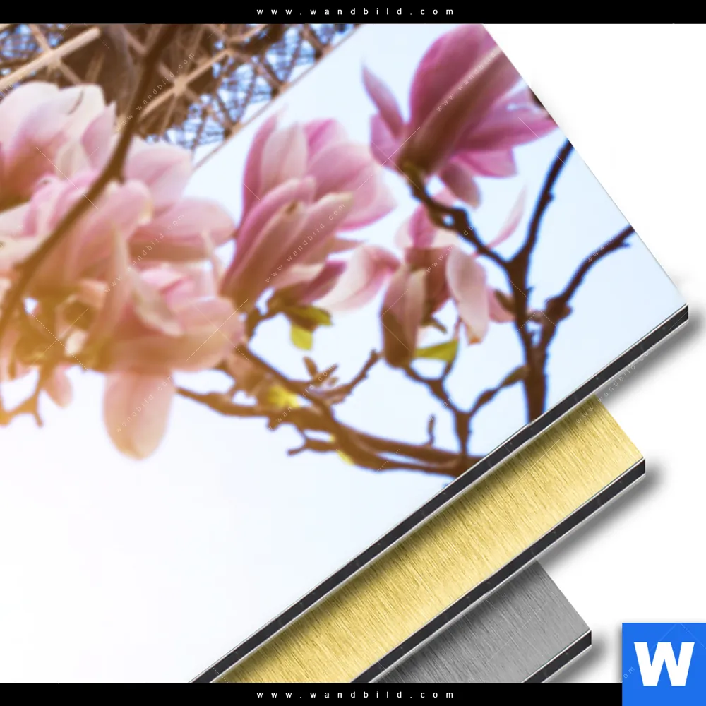 Aluminiumbild gebürstet | Mangnolien in Paris | Schmal