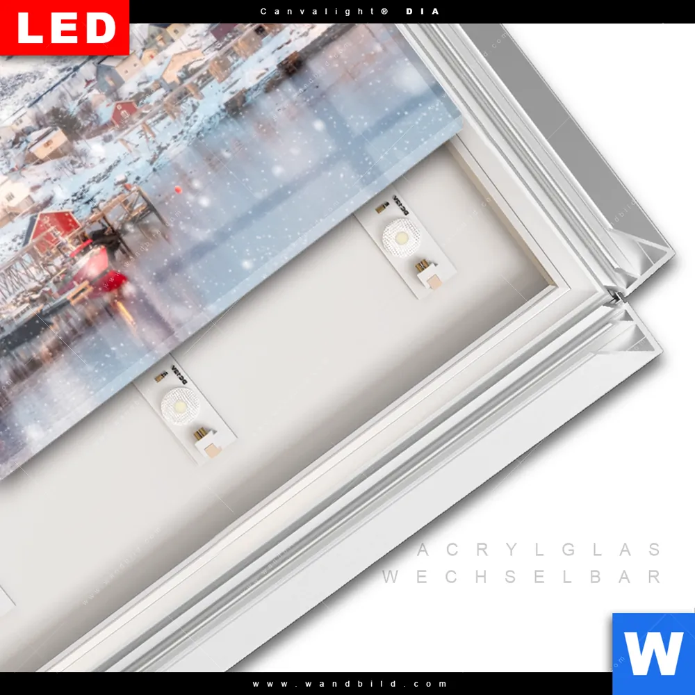 LED-Glasbild mit austauschbarem Acrylglas-Druck (Wechselbild)