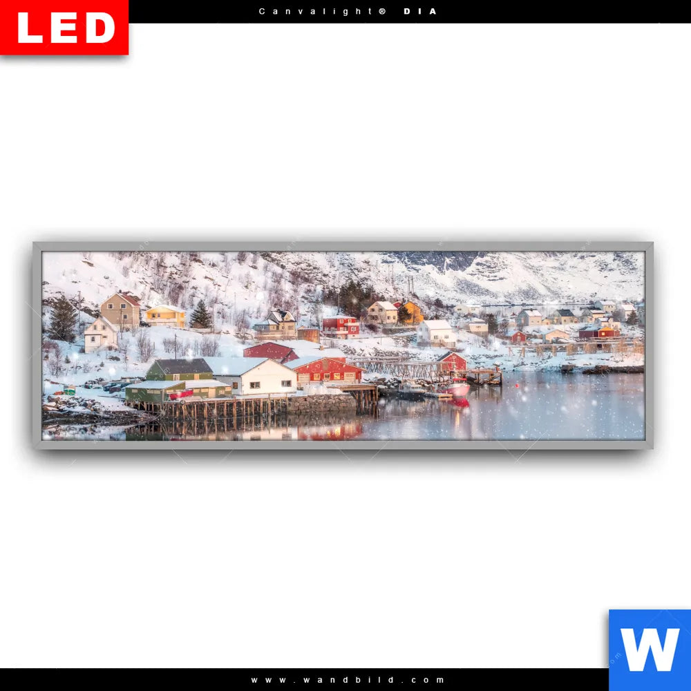 Canvalight® DIA Leuchtbild | Skandinavisches Dorf im Schnee | Panorama