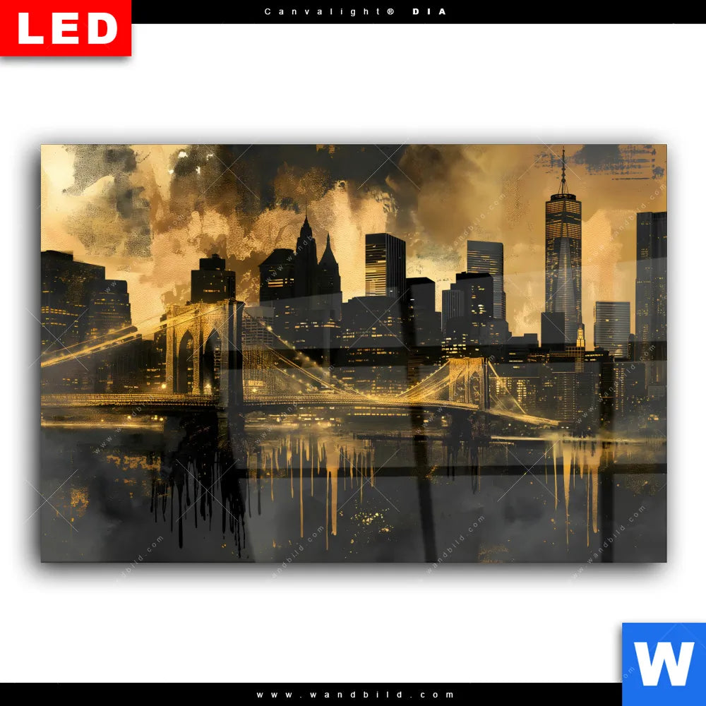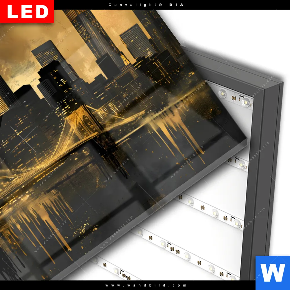 Wechselmotiv Acrylglas Canvalight® DIA | Nachtleuchten über Manhattan | Querformat