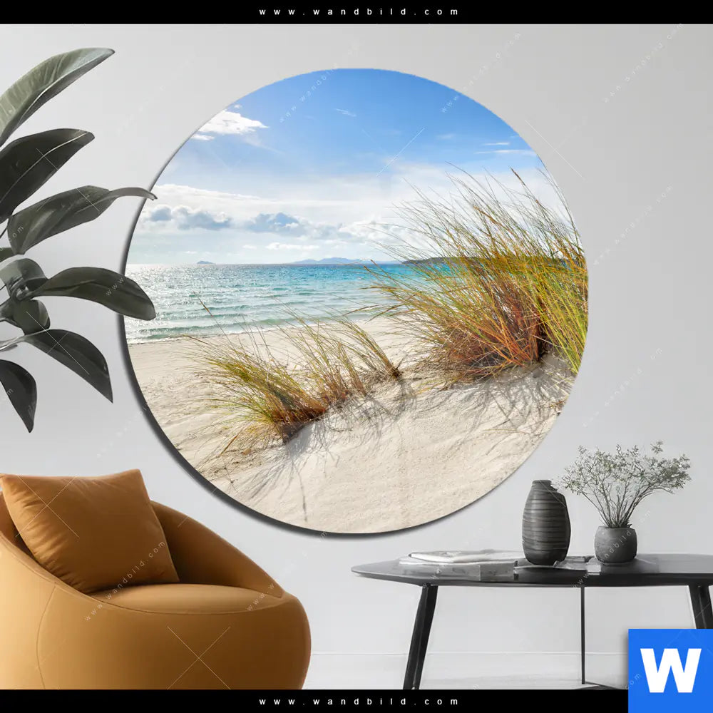 Acrylglasbild | Dünenlandschaft mit Meerblick | Rund