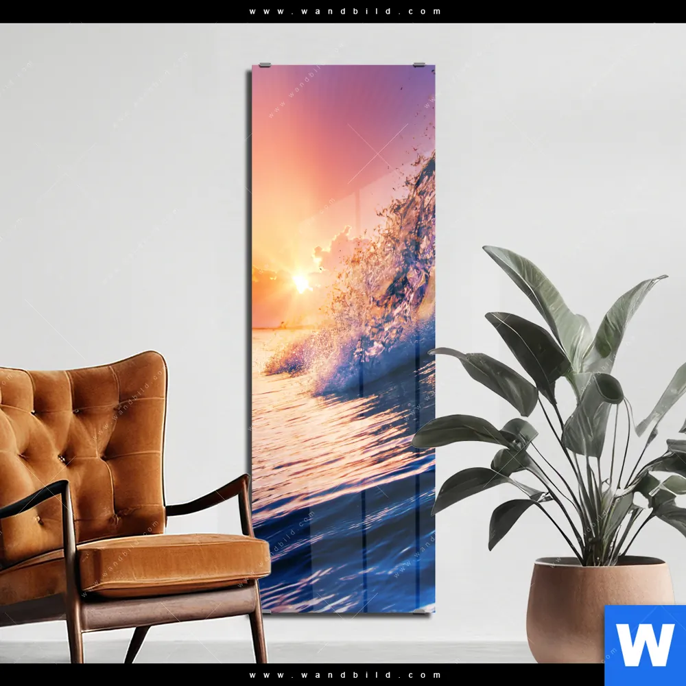 Acrylglasbild | Welle im Sonnenuntergang | Schmal