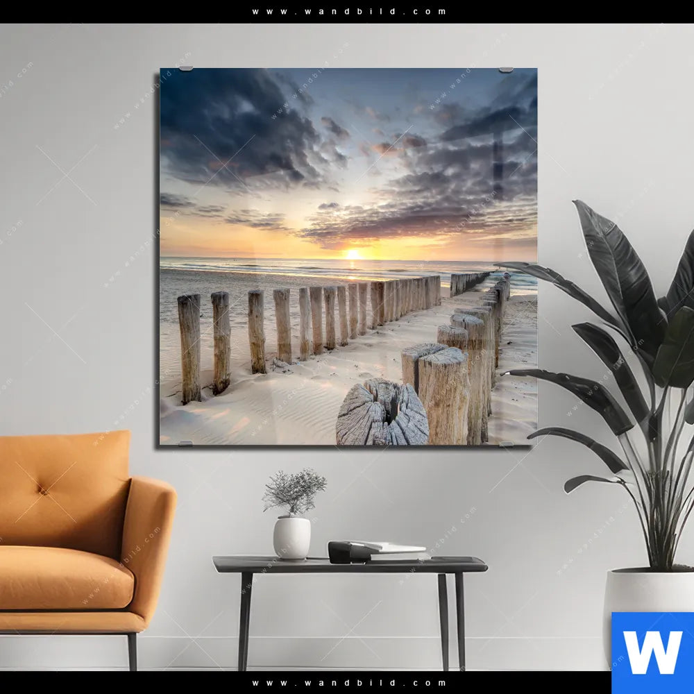 Acrylglasbild | Wellenbrecher am Nordseestrand | Quadrat