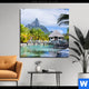 Aluminiumbild gebürstet | Palmen & Berg auf Insel | Schmal
