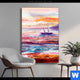 Spannbild | Gemälde mit Boot im Sonnenuntergang | Hochformat
