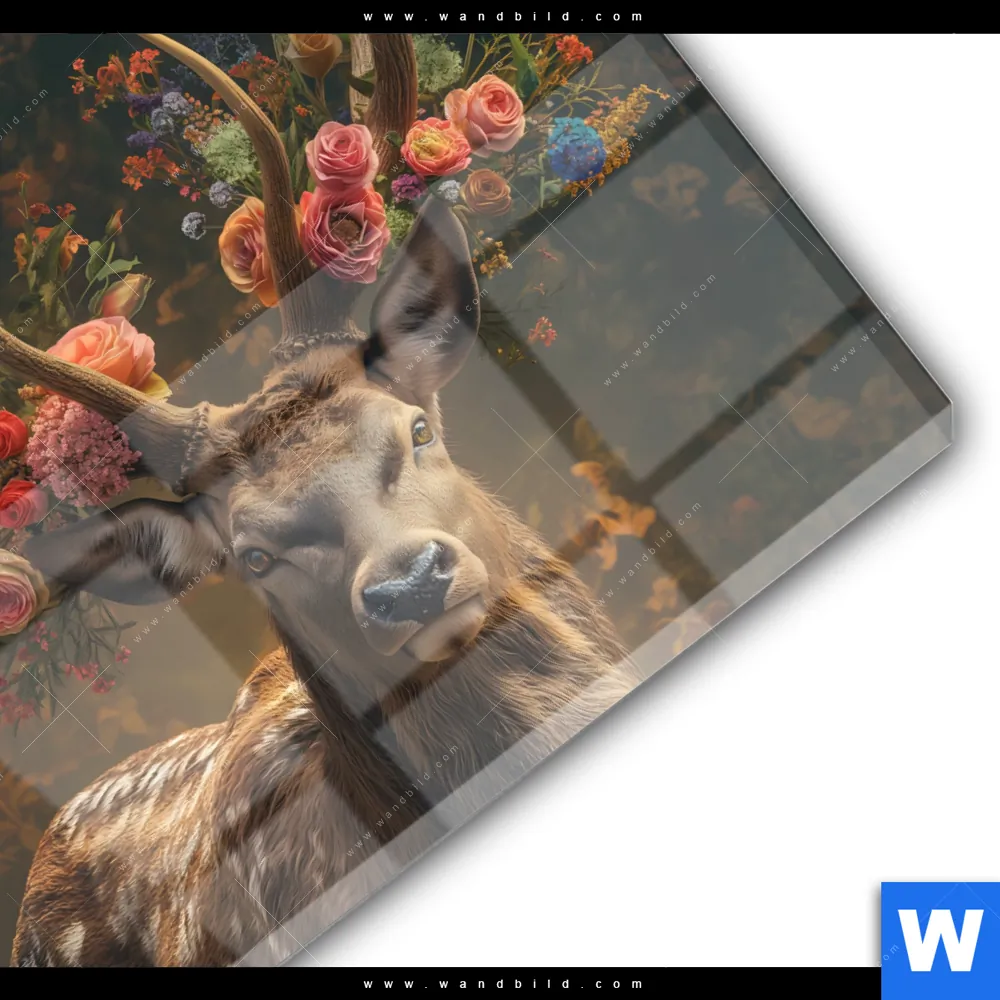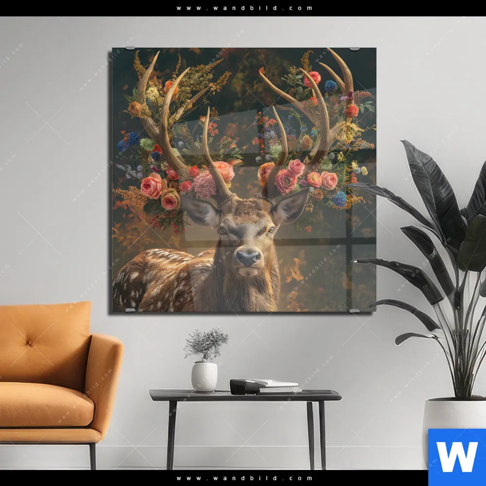Acrylglasbild | Hirsch mit floralem Geweih | Quadrat