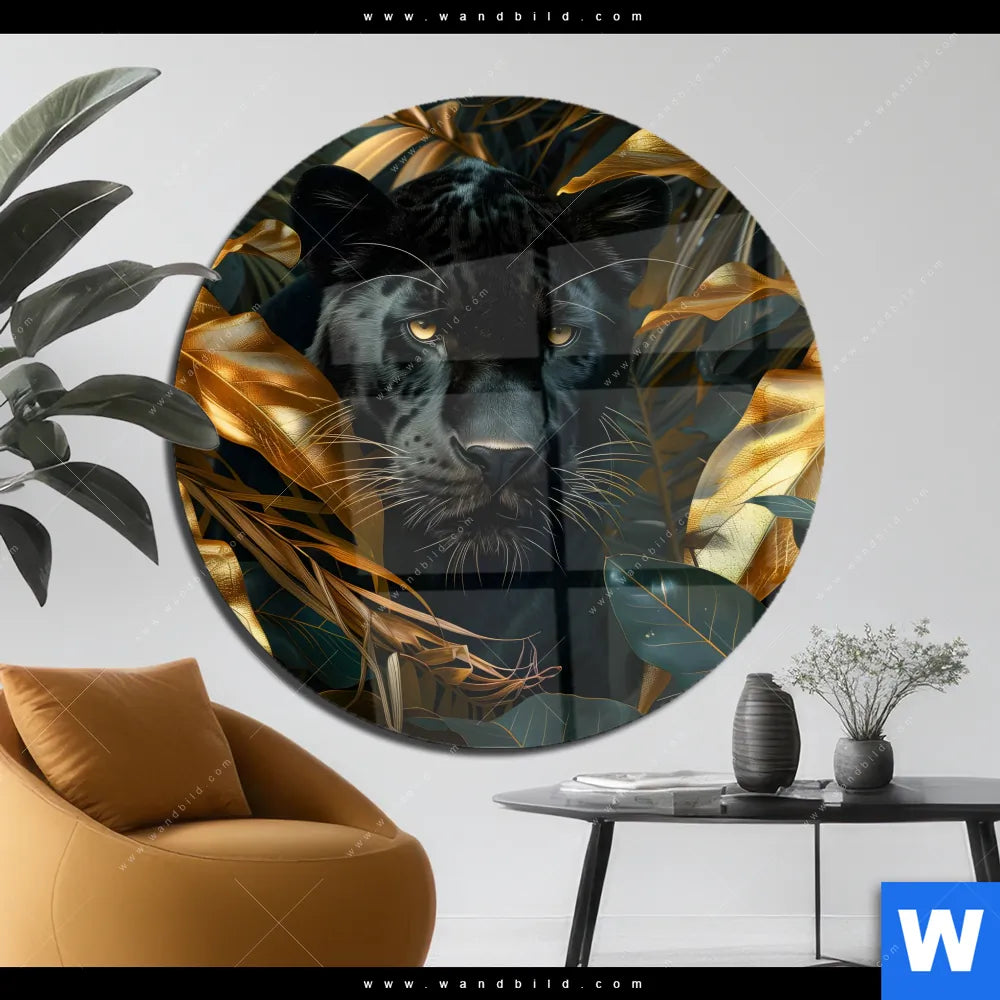 Acrylglasbild | Schwarzer Panther im Dschungel | Rund