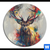 Aluminiumbild gebürstet | Kreativer Hirsch mit Farbspritzern | Rund