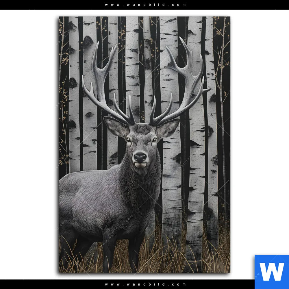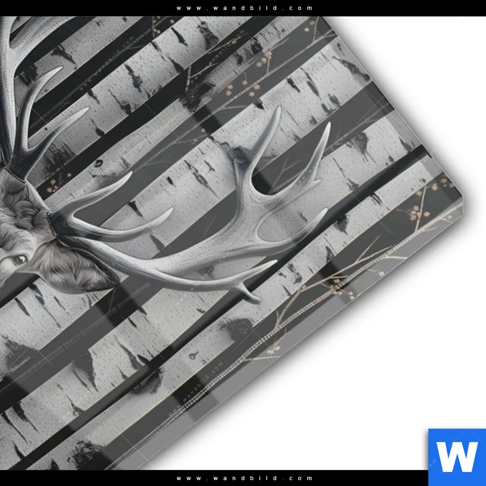 Acrylglasbild | Hirschporträt vor Birken | Hochformat