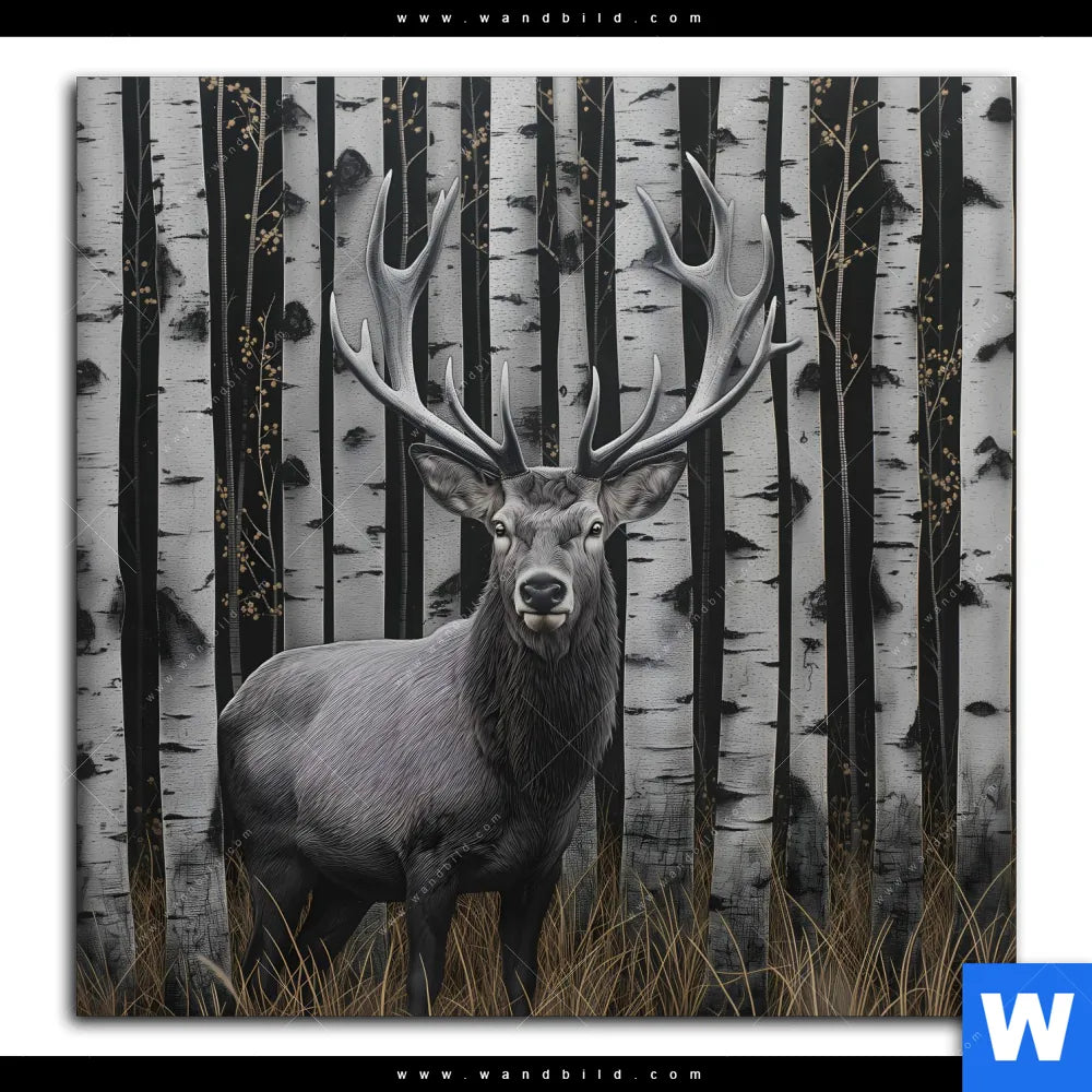 Acrylglasbild | Hirschporträt vor Birken | Quadrat