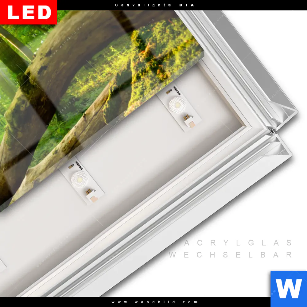 LED-Glasbild mit austauschbarem Acrylglas-Druck (Wechselbild)