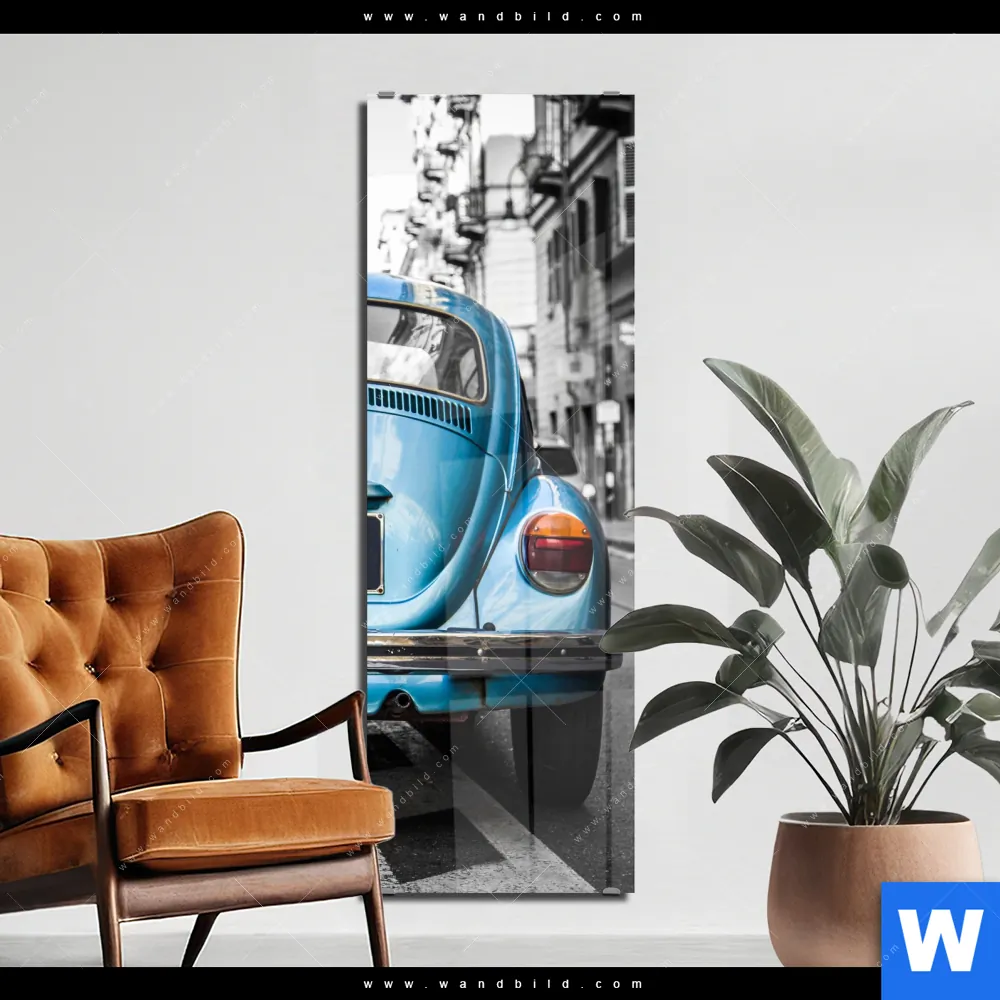 Acrylglasbild | Blauer Oldtimer | Schmal