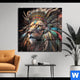 Acrylglasbild | Löwenkopf mit bunten Federn | Rund