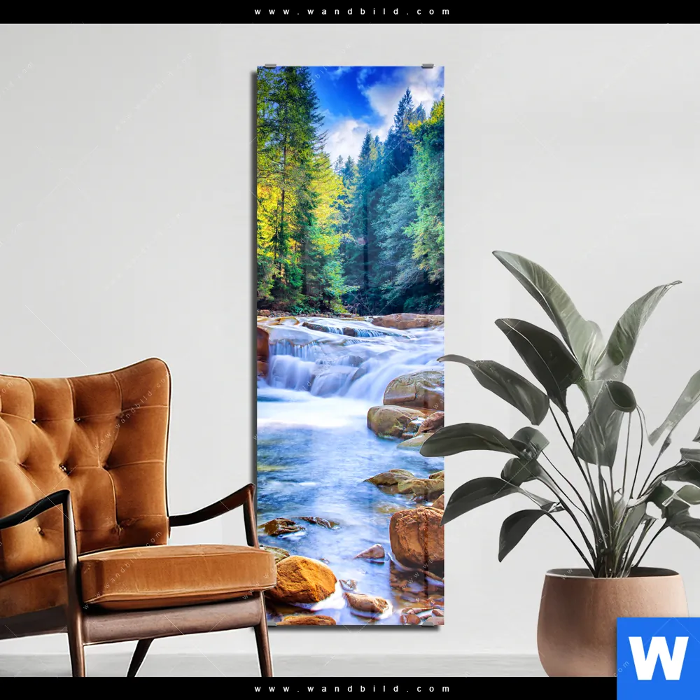 Acrylglasbild | Schöner Wasserfall im Wald | Schmal