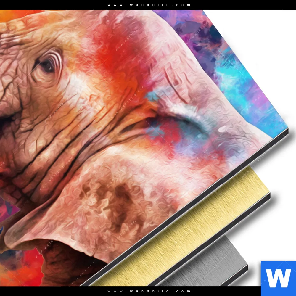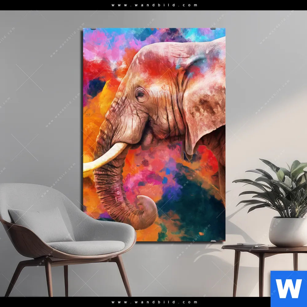 Alu-Dibond Bild | Moderner Bunter Elefant | Hochformat