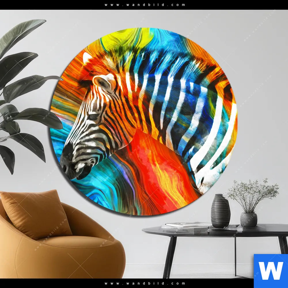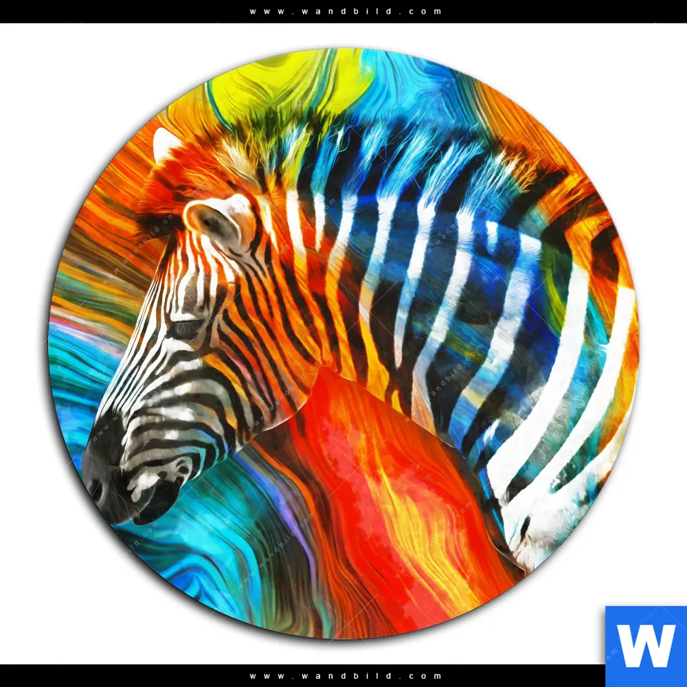 Alu-Dibond Bild | Modernes Buntes Zebra | Rund