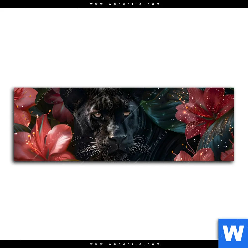 Alu-Dibond Bild | Panther und rote Blüten | Panorama