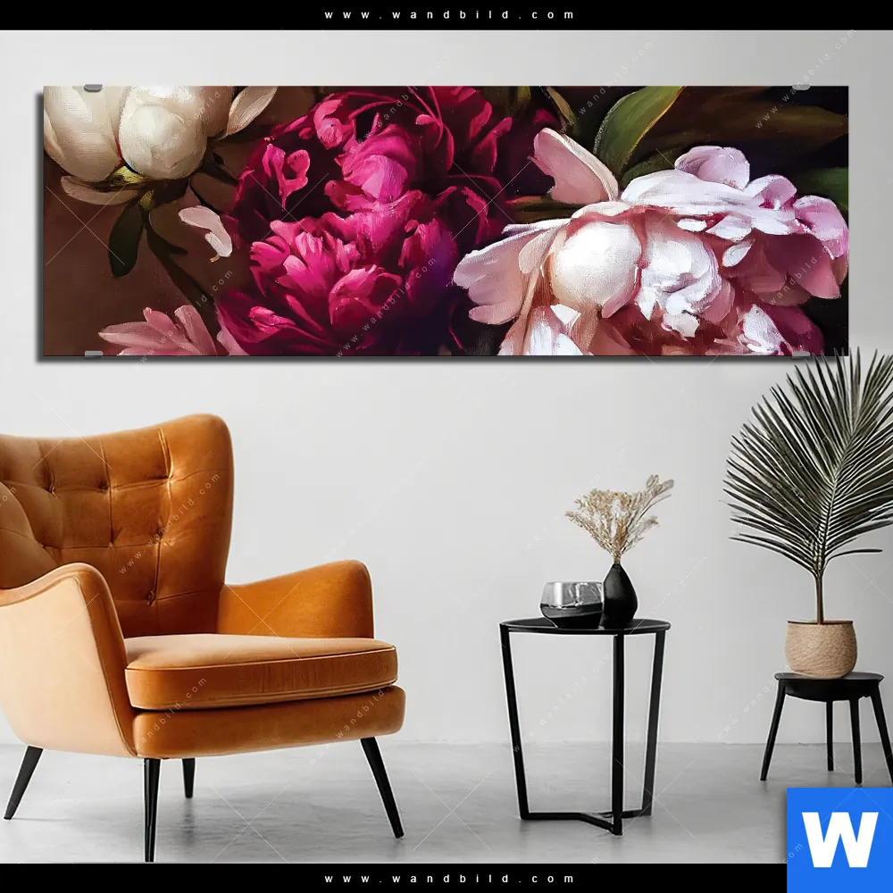 Alu-Dibond Bild | Pfingstrosen im Barockstil | Panorama