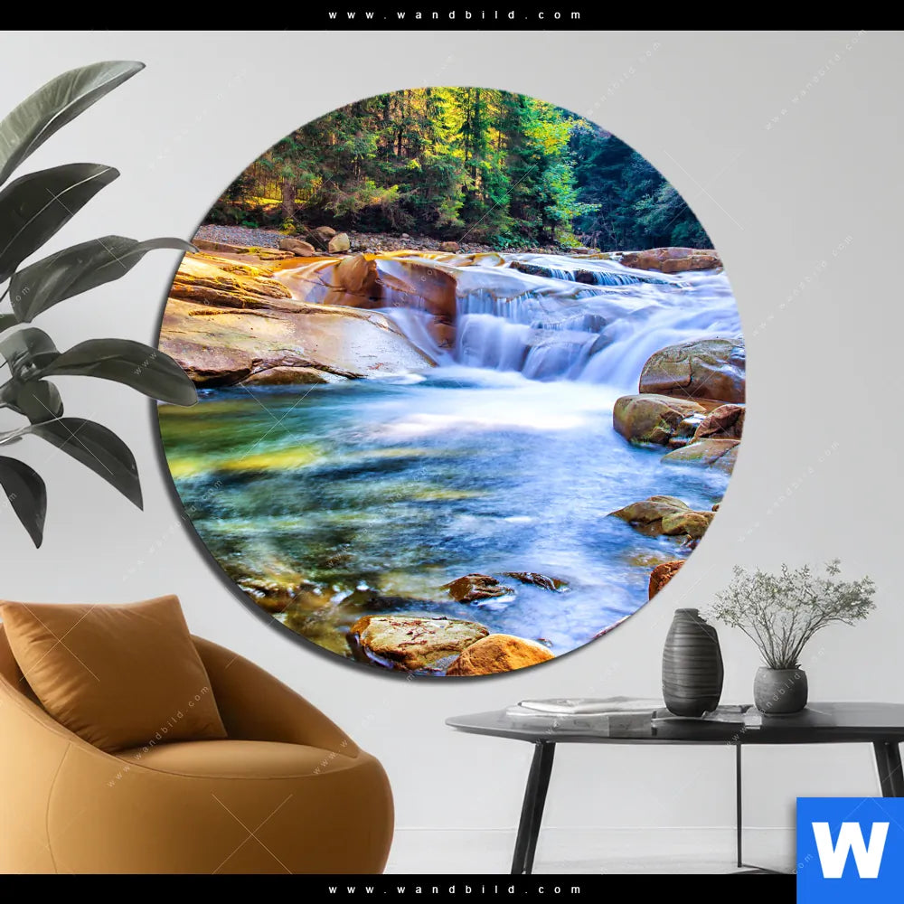 Alu-Dibond Bild | Schöner Wasserfall im Wald | Rund