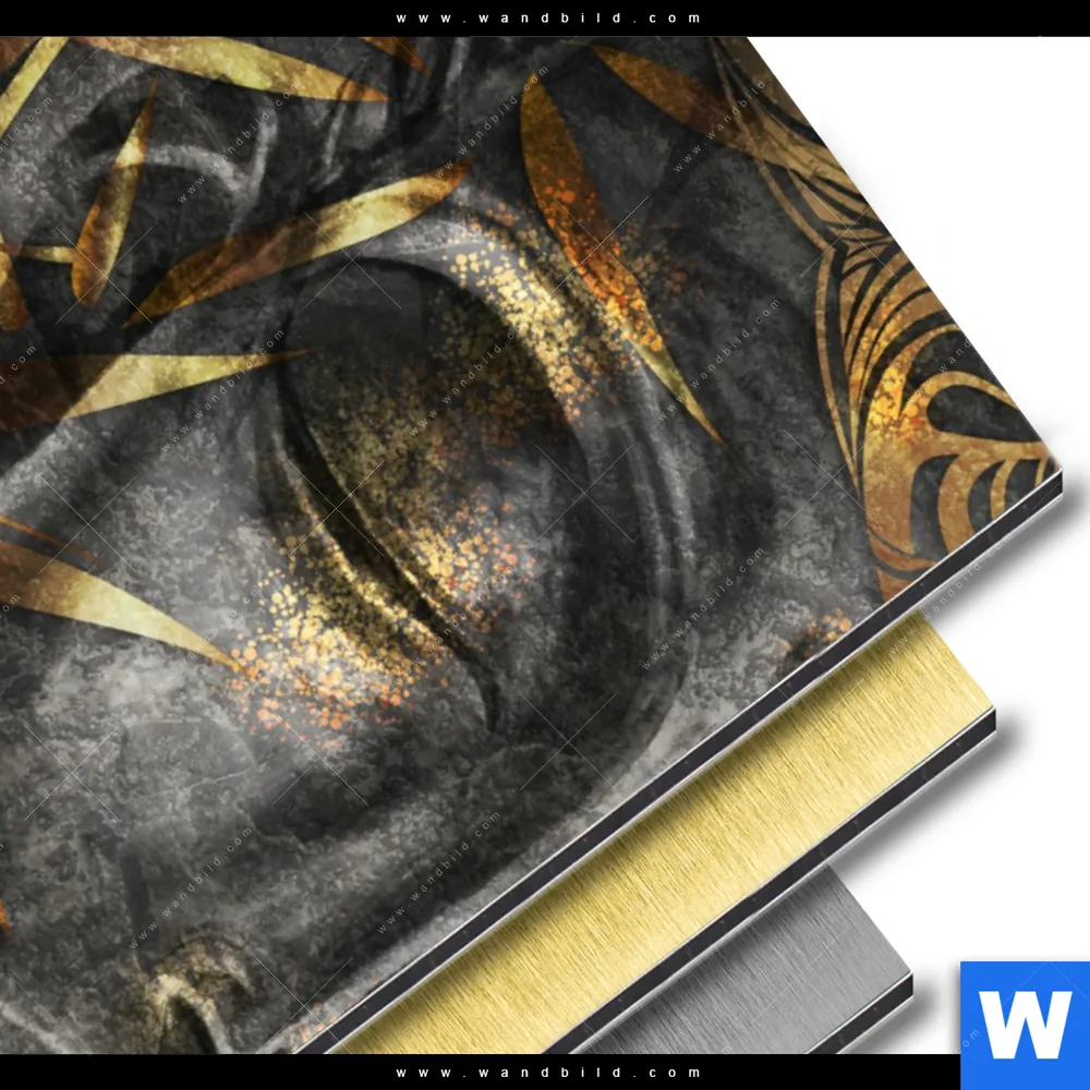 Buddha - Feng Shui Aluminiumbild mit metallischem Effekt inkl. vormontiertem Rückrahmen