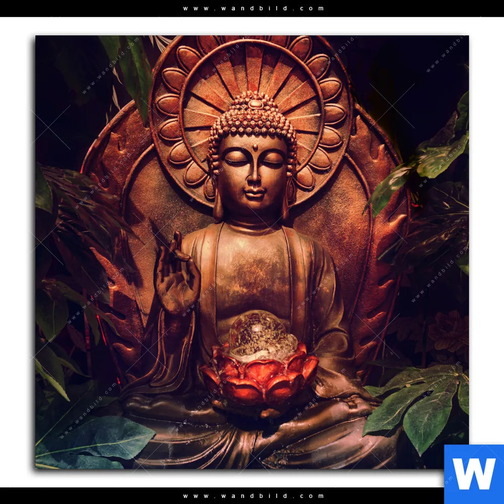 Buddha - Feng Shui Aluminiumbild mit metallischem Effekt inkl. vormontiertem Rückrahmen