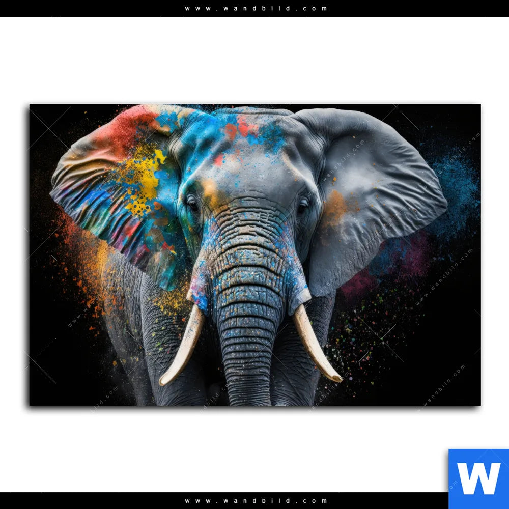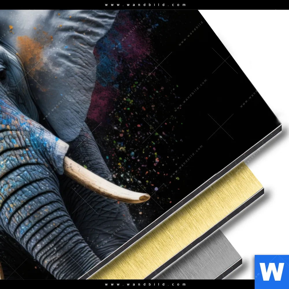 Aluminiumbild gebürstet | Bunter Elefant | Querformat