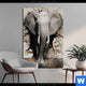 Aluminiumbild gebürstet | Elefant bricht durch Mauer | Querformat