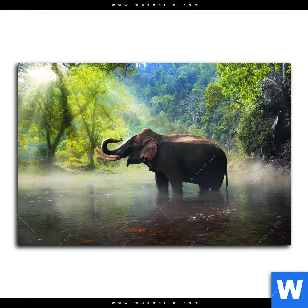 Aluminiumbild gebürstet | Elefant im Wasser | Querformat
