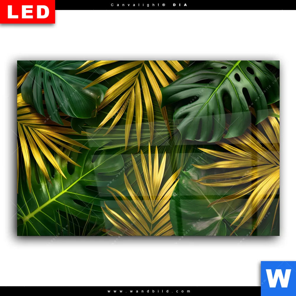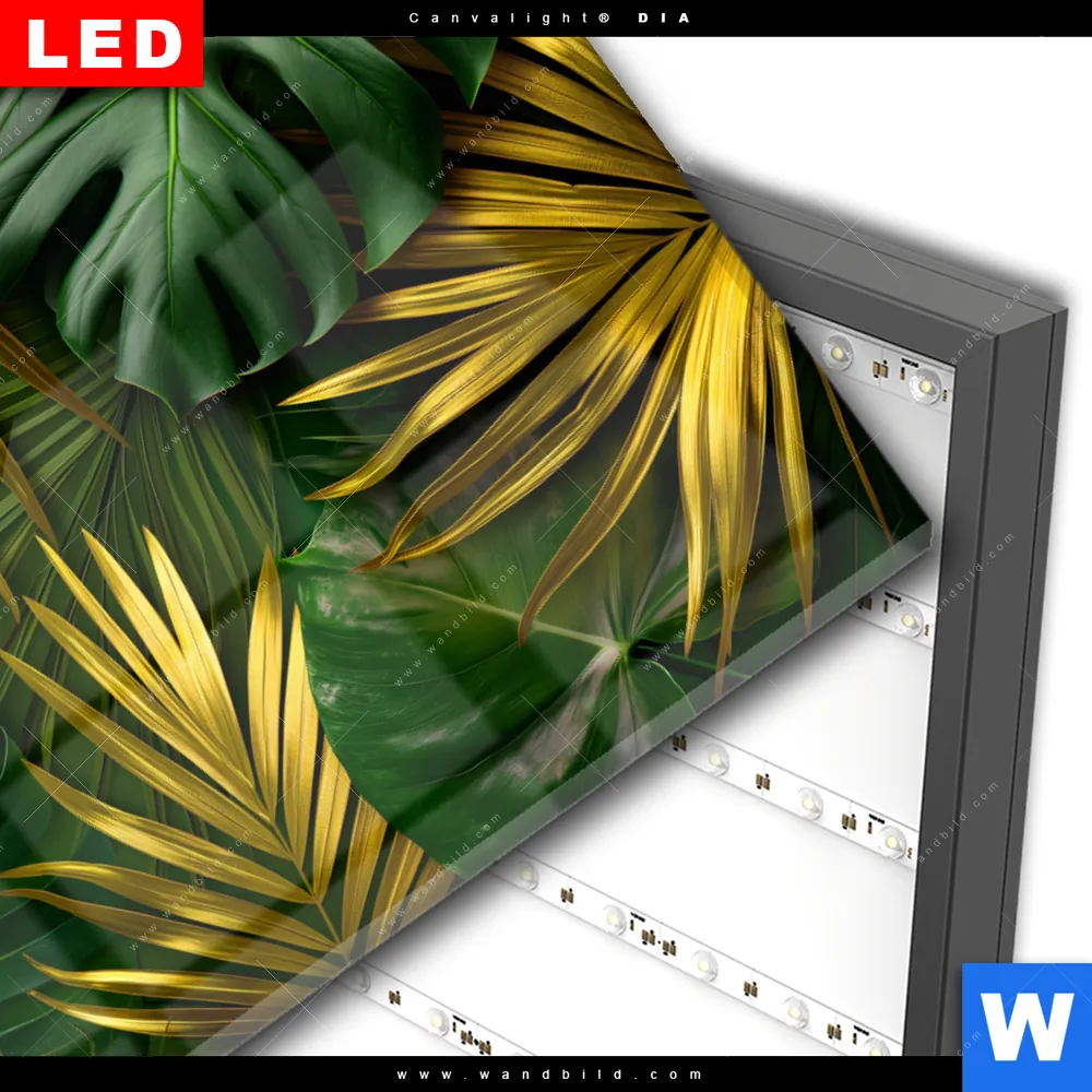 Wechselmotiv Acrylglas Canvalight® DIA | Blätter Gold Grün | Querformat