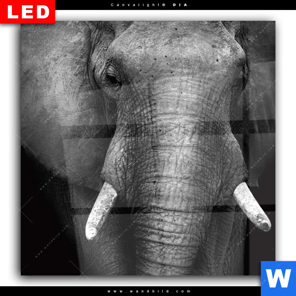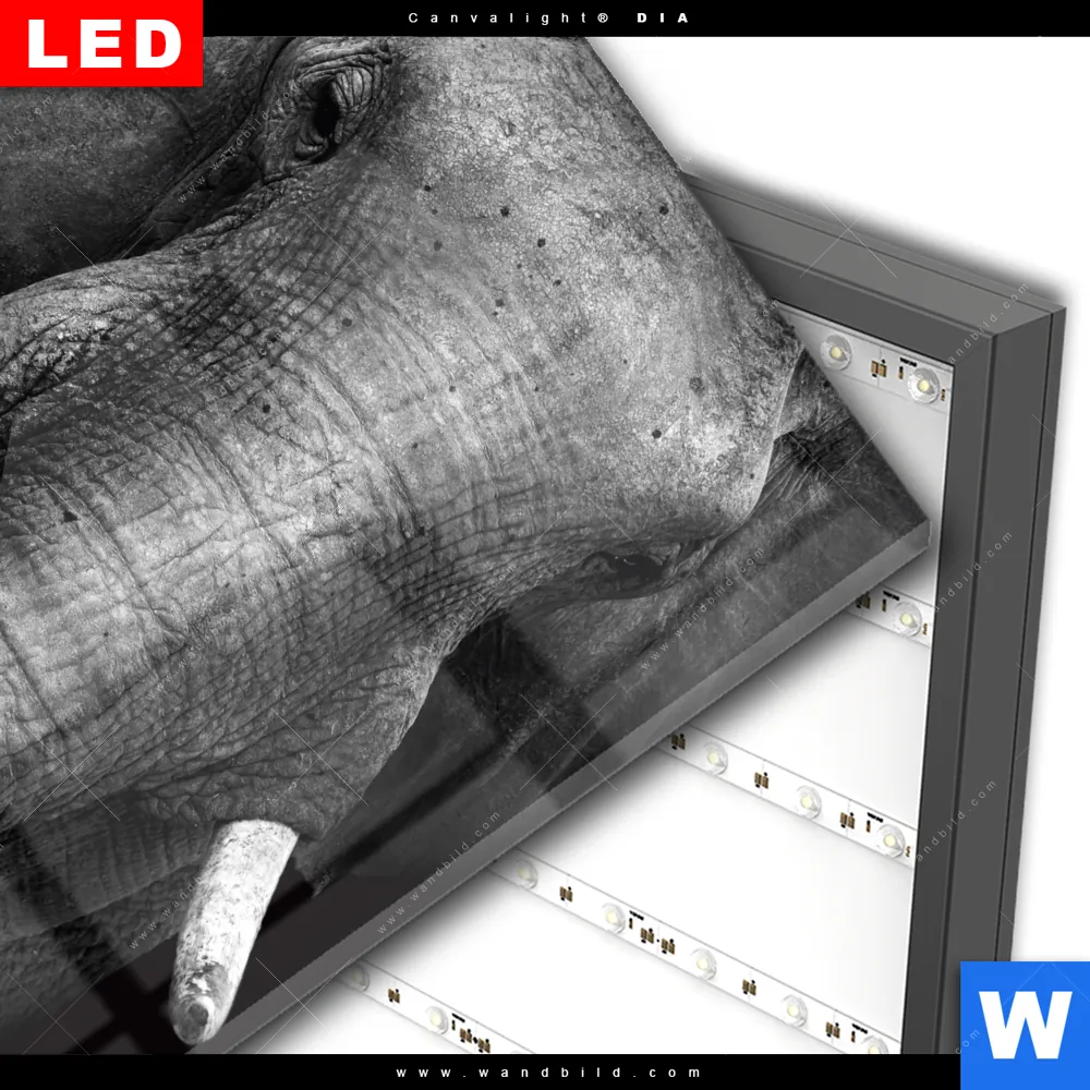 Wechselmotiv Acrylglas Canvalight® DIA | Elefant Schwarzweiß | Quadrat
