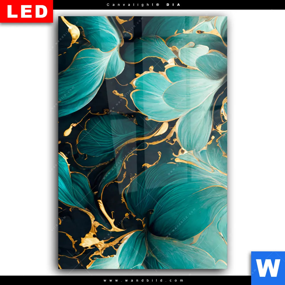 Wechselmotiv Acrylglas Canvalight® DIA | Marmor Blüten in türkis & gold | Hochformat