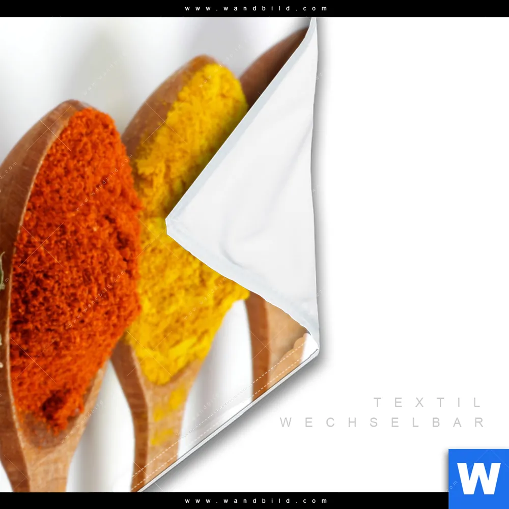 Wechselmotiv Textil | Farbige Gewürze auf Holzlöffel | Hochformat