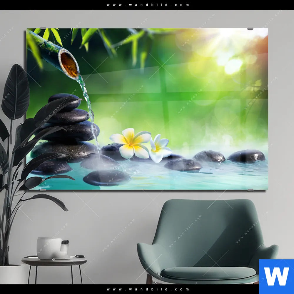 Buddha - Feng Shui, Blumen - Botanik Glasbild inkl. vormontiertem Rückrahmen