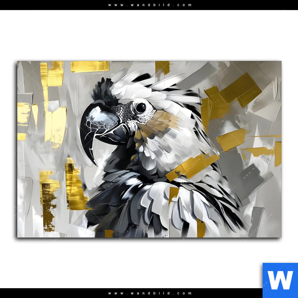 Aluminiumbild gebürstet | Abstrakter Papagei mit Gold | Querformat
