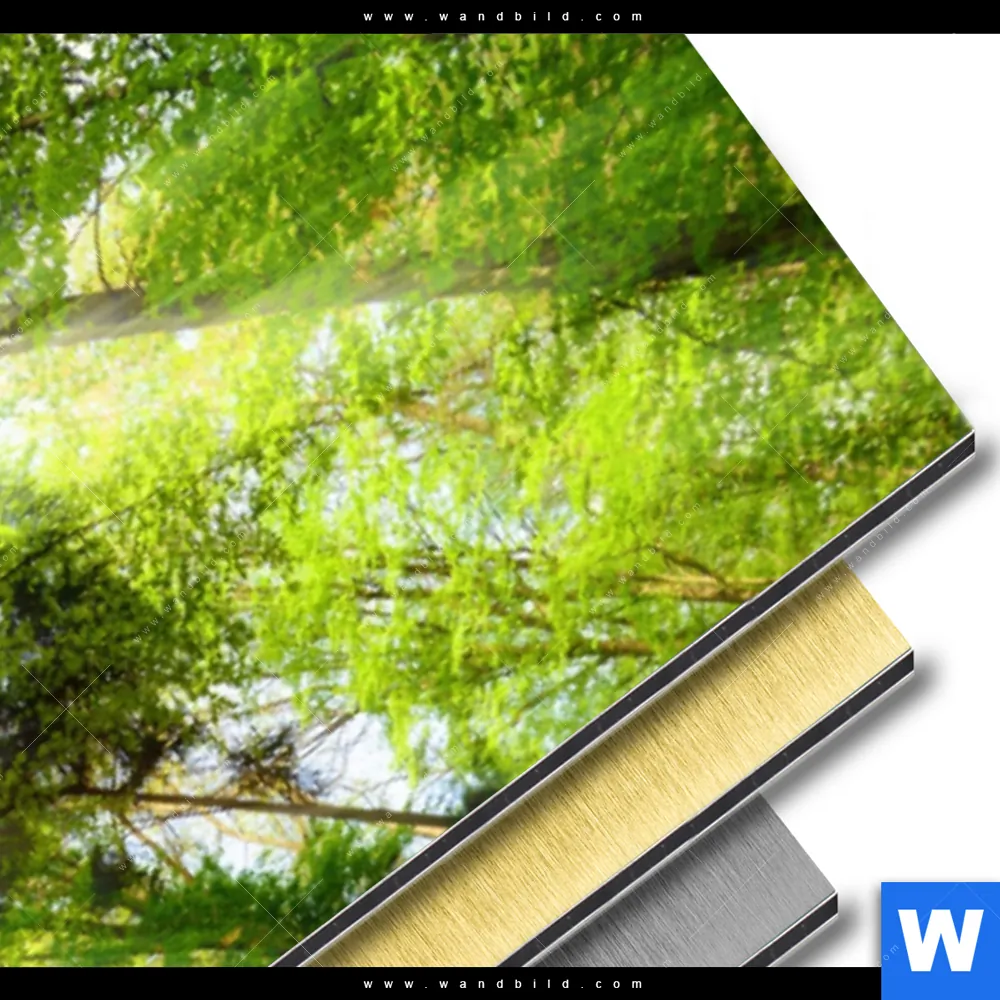 Landschaften, Wald - Bäume Aluminiumbild mit metallischem Effekt inkl. vormontiertem Rückrahmen