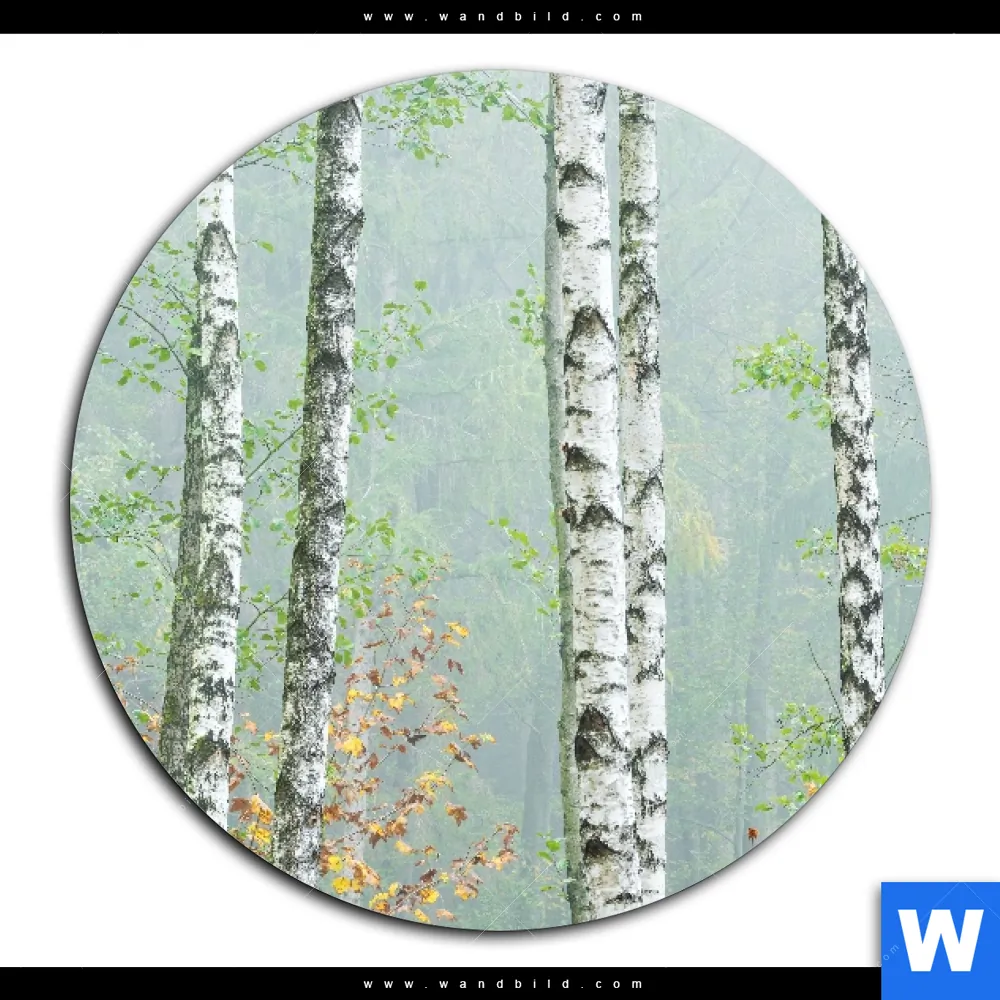 Aluminiumbild gebürstet | Nebliger Birkenwald | Rund