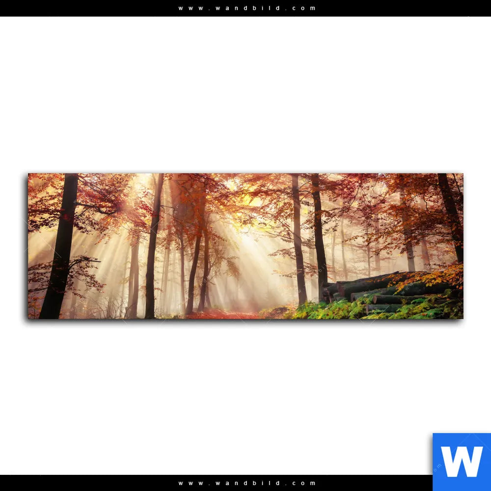Aluminiumbild gebürstet | Sonnenlicht im nebligen Wald | Panorama