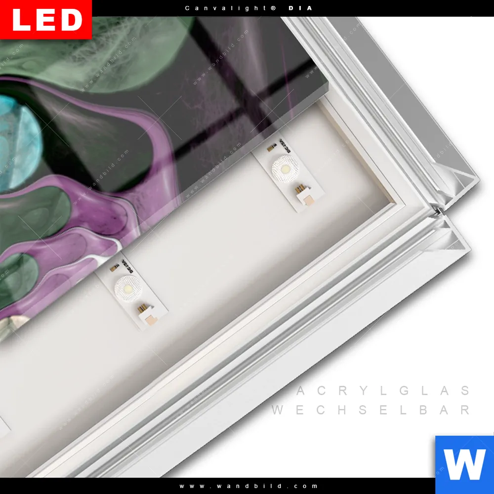 LED-Glasbild mit austauschbarem Acrylglas-Druck (Wechselbild)