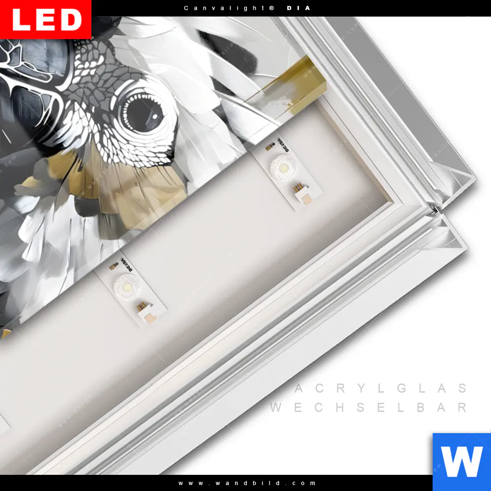 LED-Glasbild mit austauschbarem Acrylglas-Druck (Wechselbild)