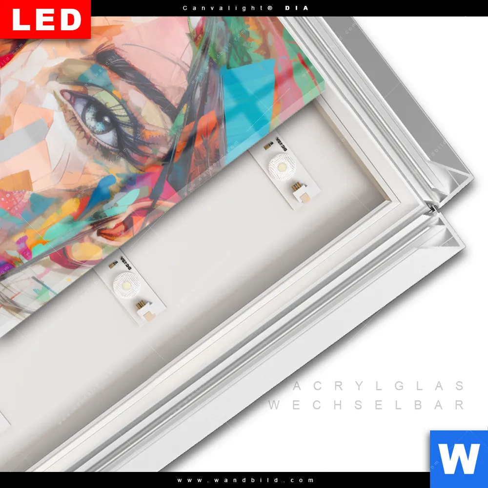 LED-Glasbild mit austauschbarem Acrylglas-Druck (Wechselbild)