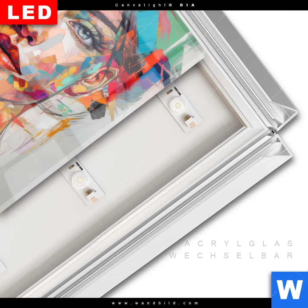 LED-Glasbild mit austauschbarem Acrylglas-Druck (Wechselbild)