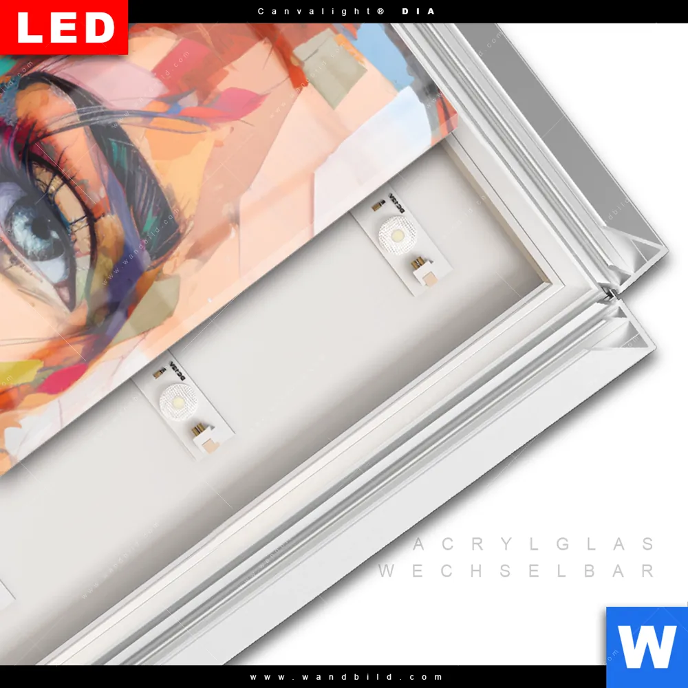 LED-Glasbild mit austauschbarem Acrylglas-Druck (Wechselbild)