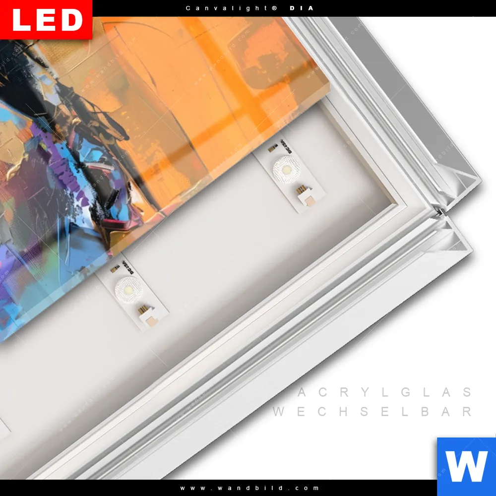 LED-Glasbild mit austauschbarem Acrylglas-Druck (Wechselbild)