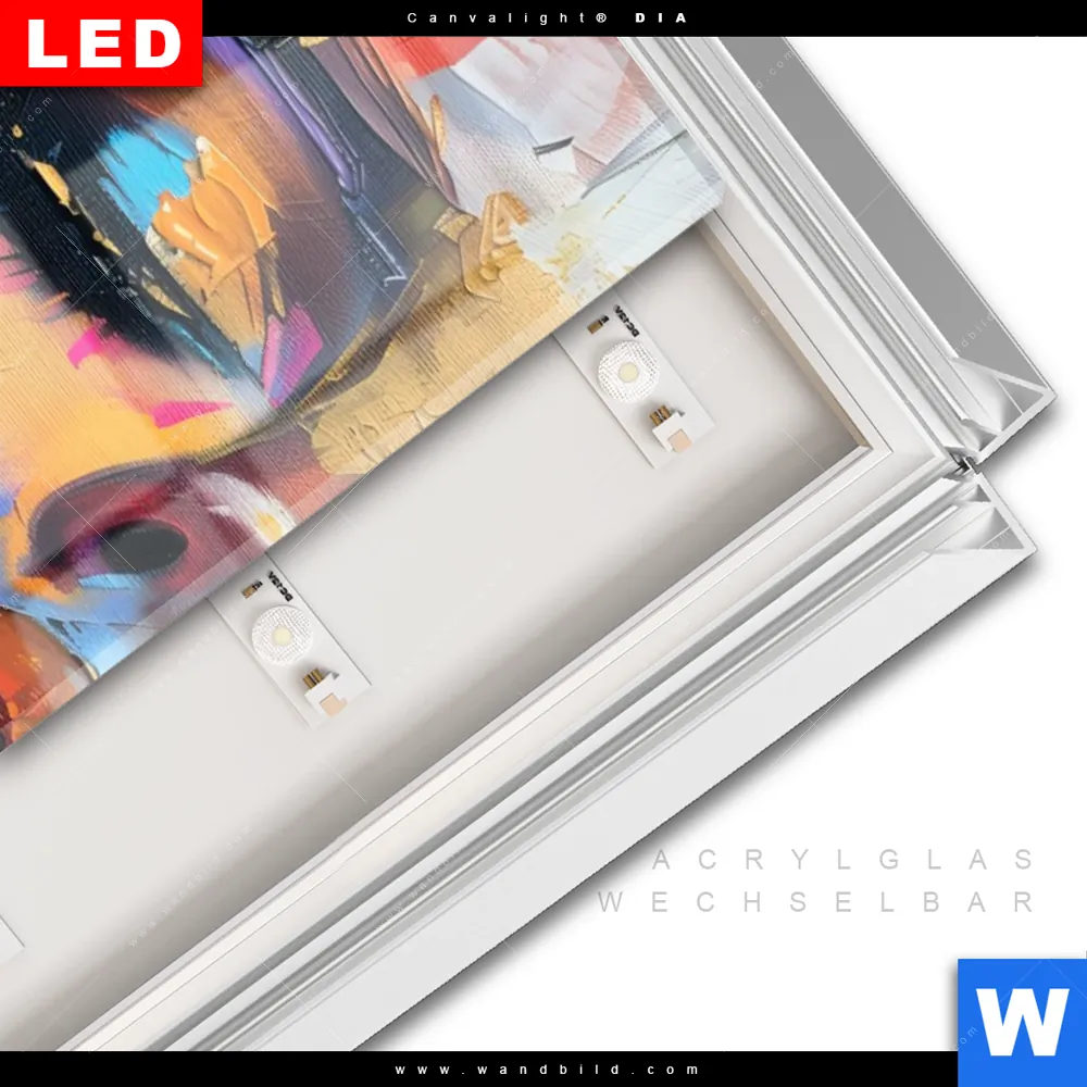 LED-Glasbild mit austauschbarem Acrylglas-Druck (Wechselbild)
